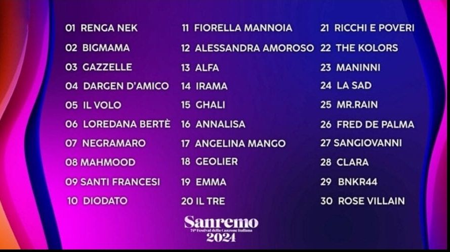 La 74ª edizione del Festival di Sanremo si è conclusa. Angelina Mango conquista il primo posto, seguita da Geolier e Annalisa.