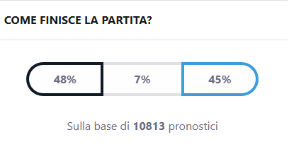 l’Inter è favorita del 3% in più rispetto al Napoli, ma possiamo dire che sarà uno scontro ad armi pari.